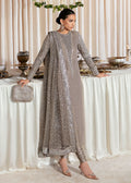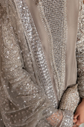 It’s a graceful grey raw silk shirt with heavily embellished front and organza sleeves. The dainty embellishments are in silver and grey pipes, sitara, cutdana, nakshi, dabka and Swarovski. It comes with a Indian Raw silk chooridaar and a gorgeous dupatta with sequin border on all 4 sides and heavy chatta of silver sitara.